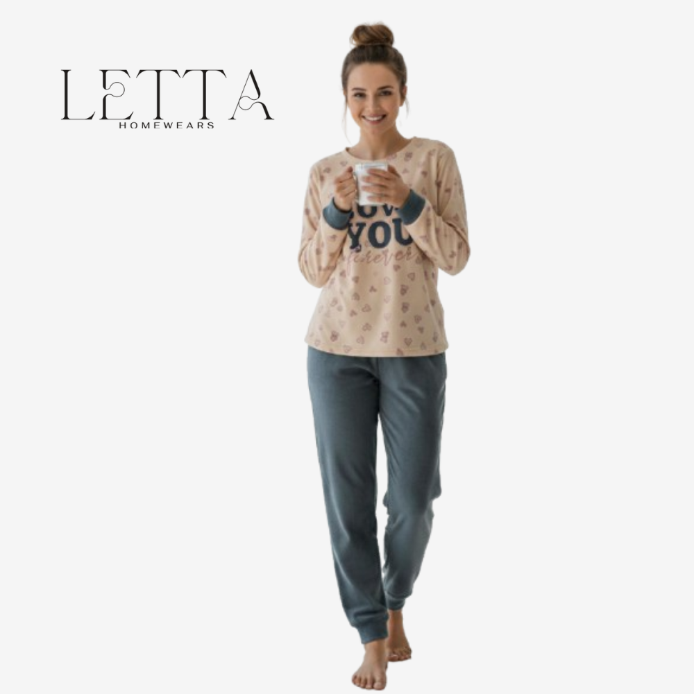 Embrace the chilly season with the perfect blend of warmth and charm. Our Heart-Print Heidi Velvet Lounge Set from LETTA Homewears is designed for the woman who values both comfort and a polished home look. Crafted from the softest imported velvet, this set offers a luxurious feel that turns every winter night into a cozy retreat.